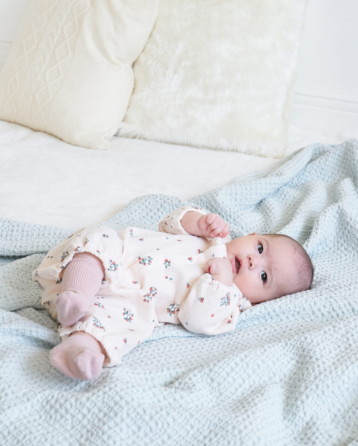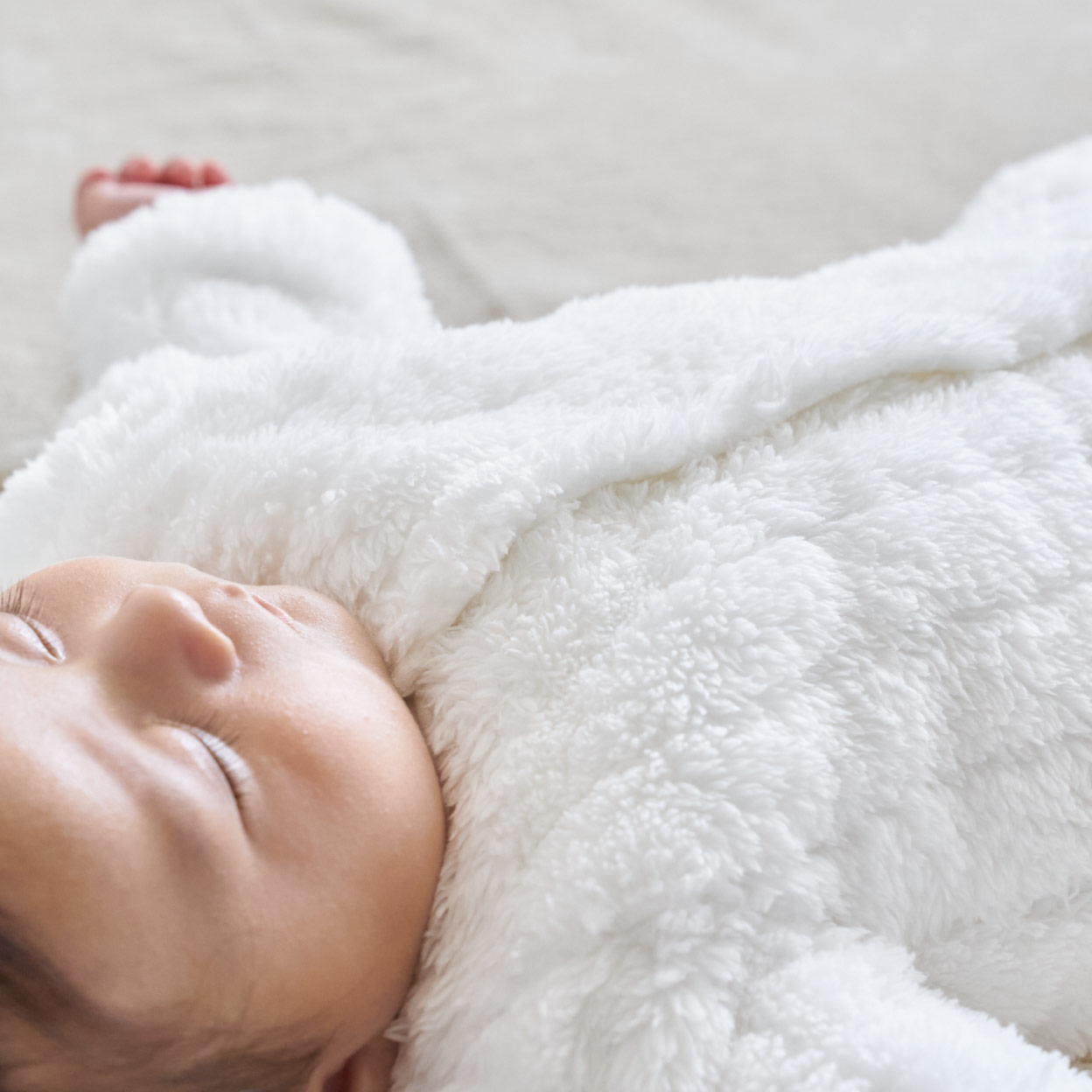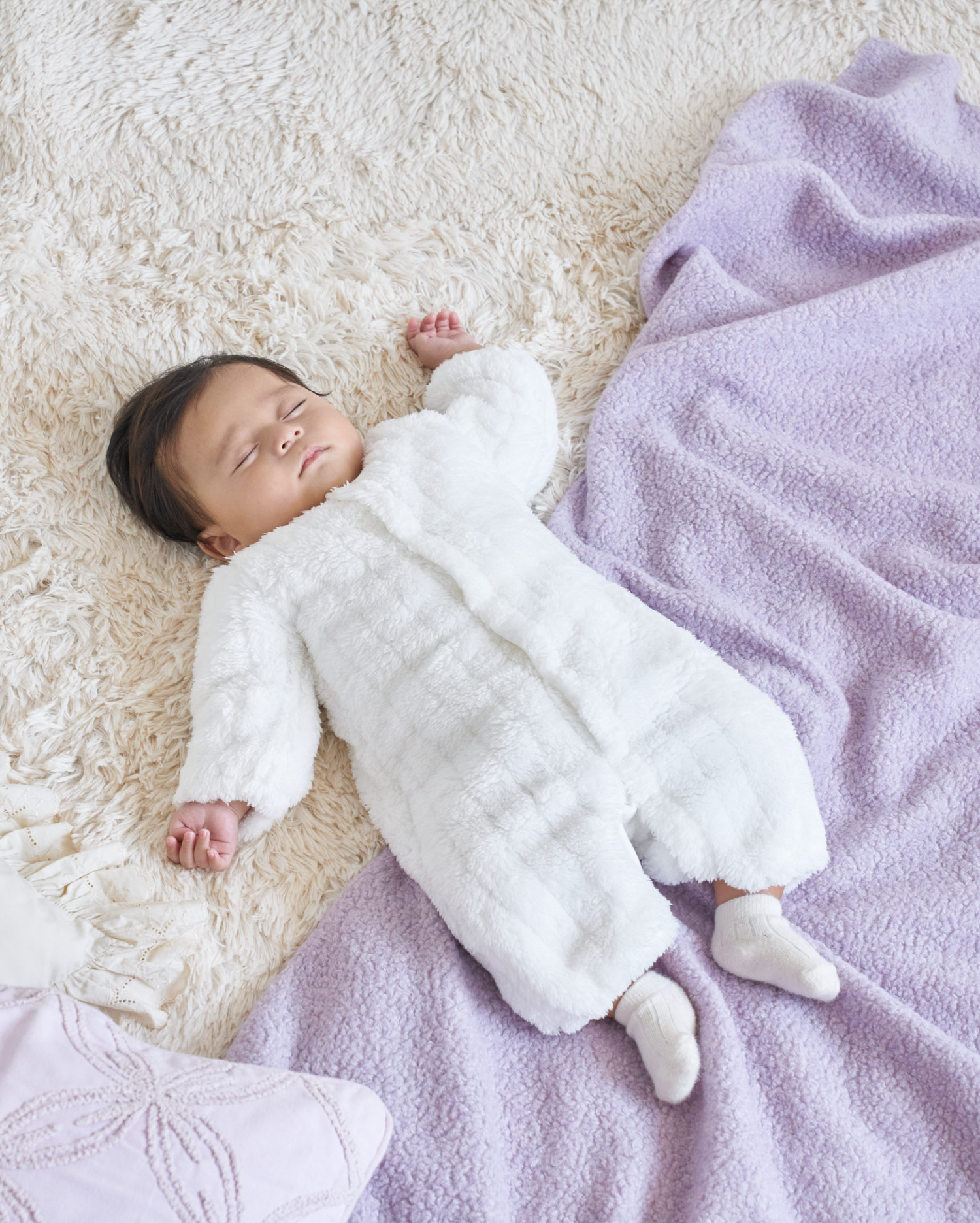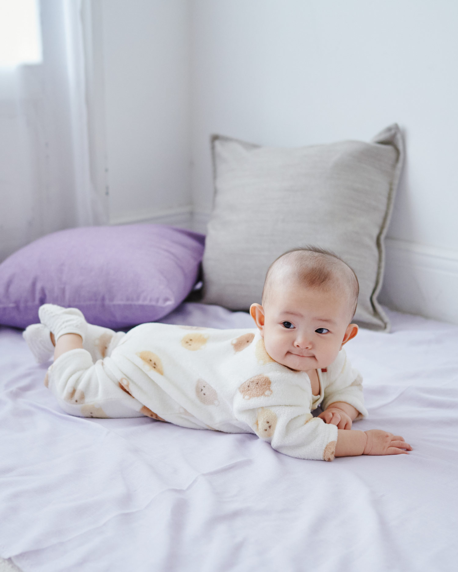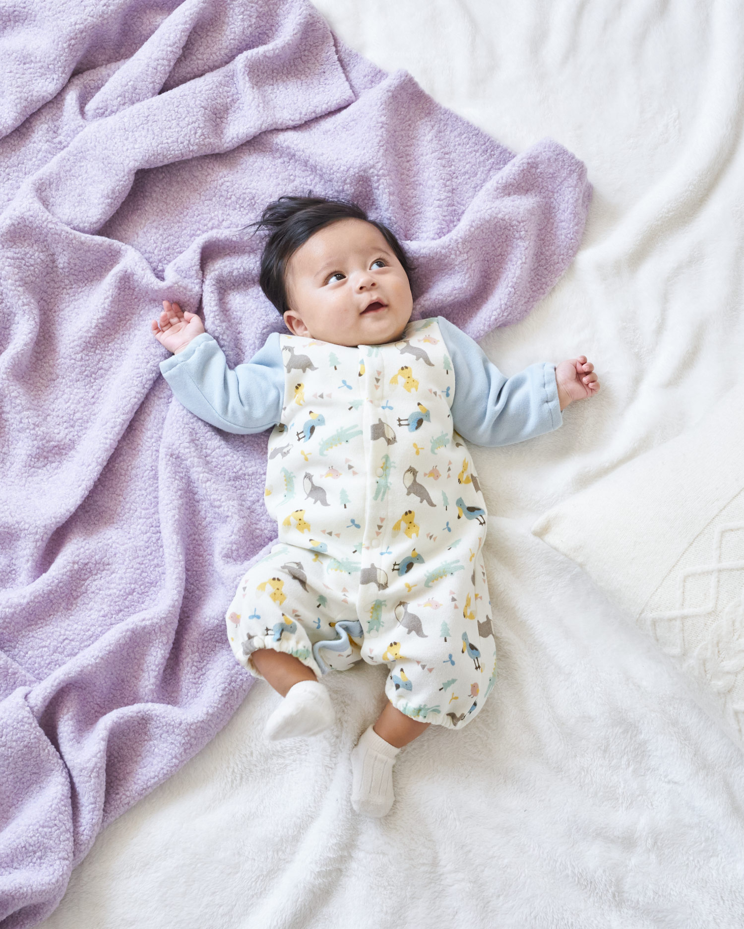 まるで雲に包まれているような、もこもこのフリース素材にときめく一着。ふんわり心地いい肌触りに、赤ちゃんもごきげんです。