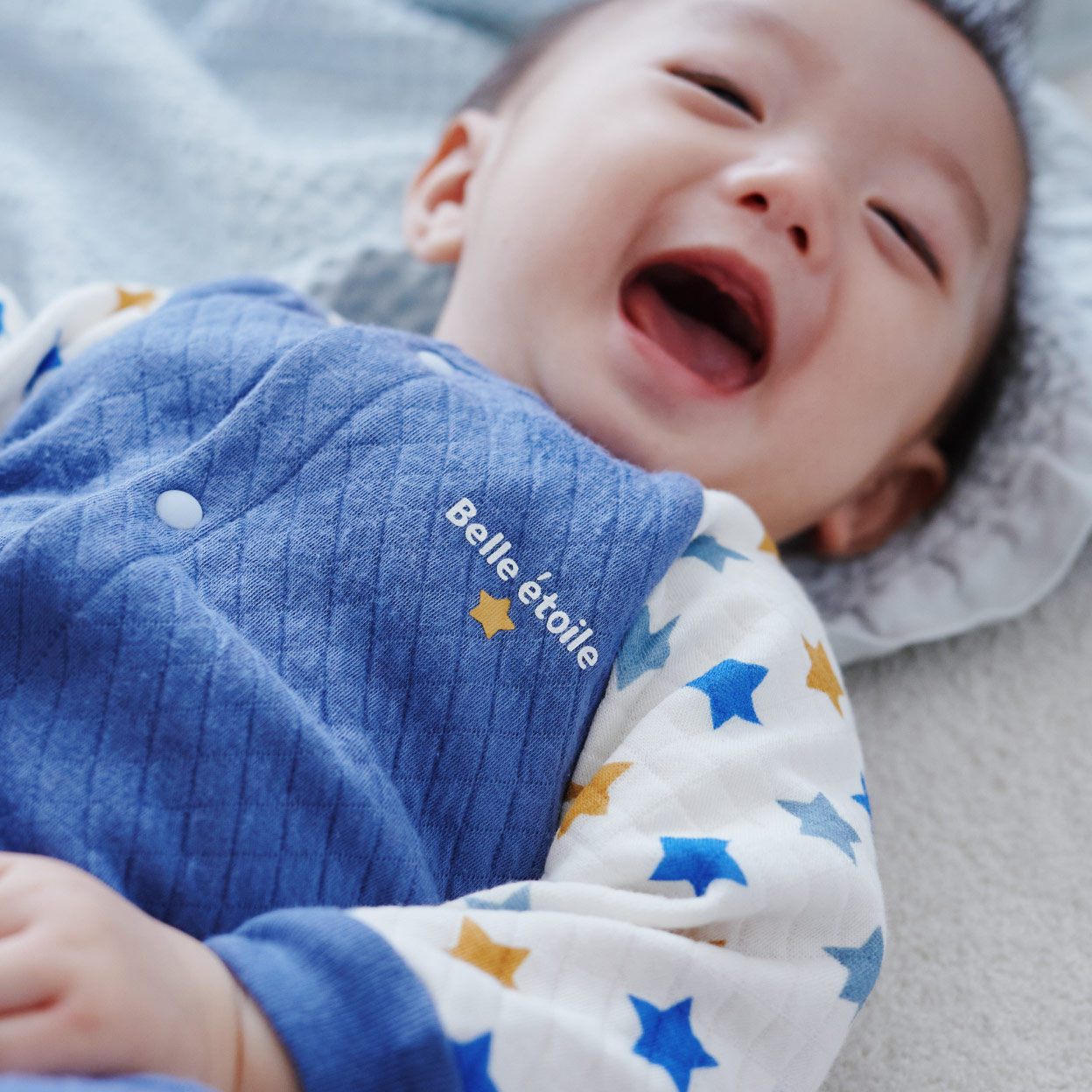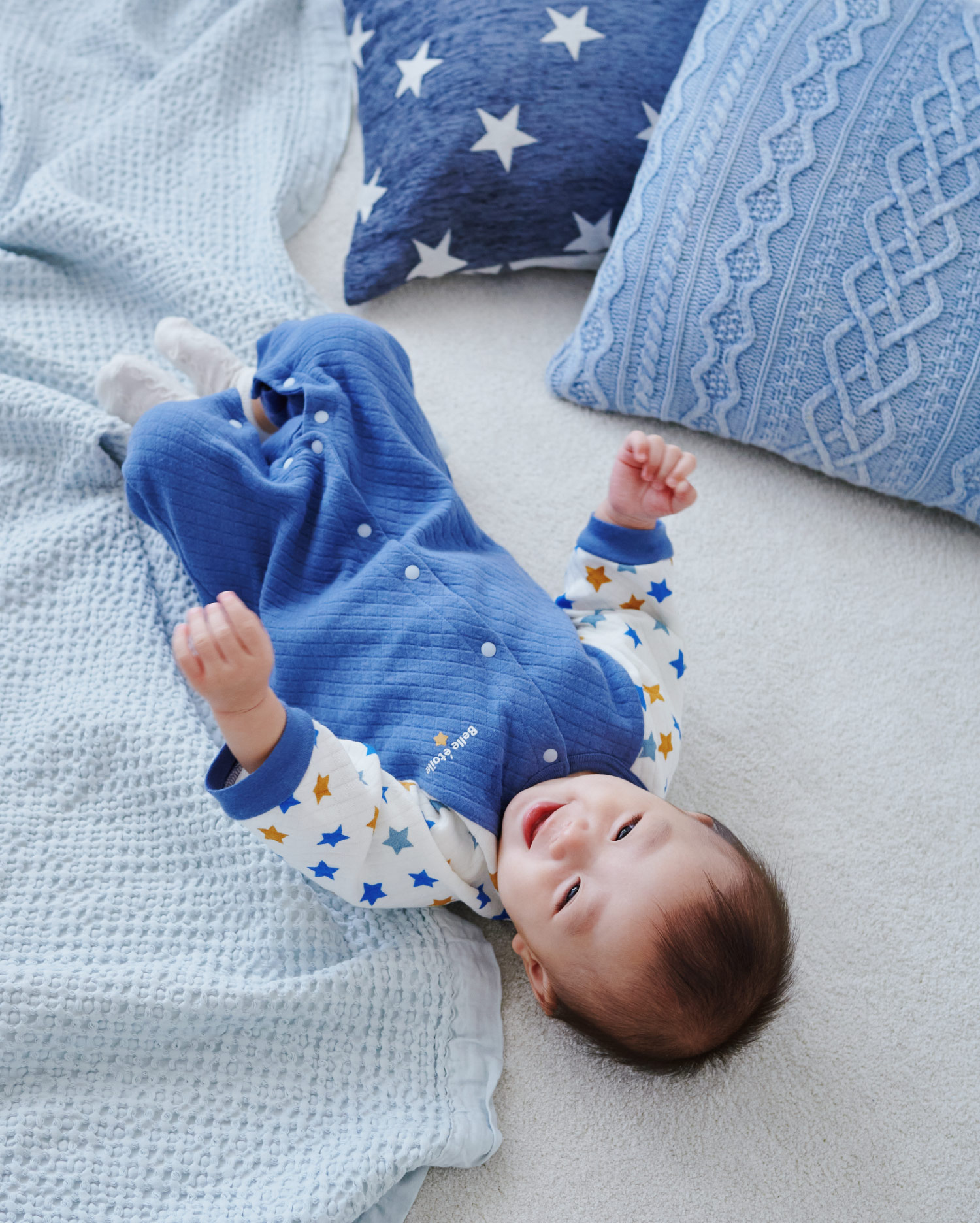 星柄モチーフの切り替えデザインがおしゃれなプレオール。保温性のあるキルティング素材でやわらかくてふっくら。