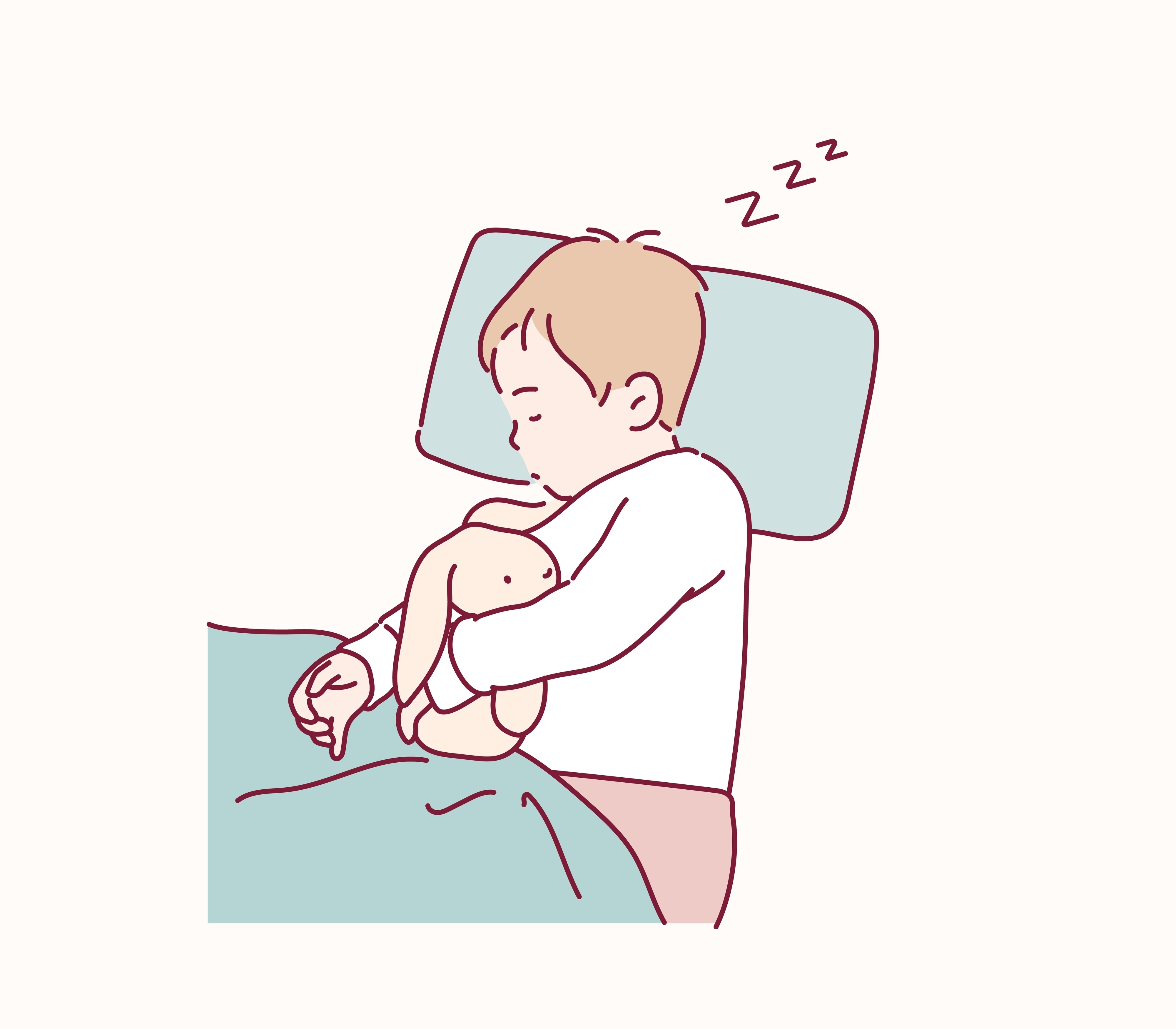 昼夜を問わず1日に16〜20時間ほど眠る時期です。新生児は短時間の睡眠と覚醒を繰り返しますが、徐々に夜にまとまって眠れるようになります。