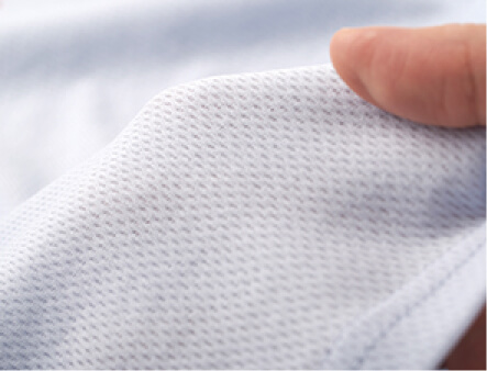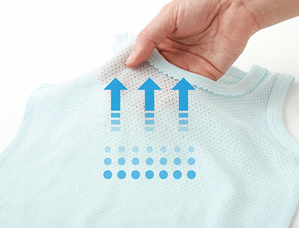 生地表面の凸凹で肌との間にすき間をつくり、汗をかいてもベタつきにくい。