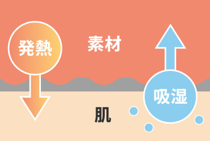 体から出る湿気や汗の水分を吸収して発熱し、素材があたたかくなります。