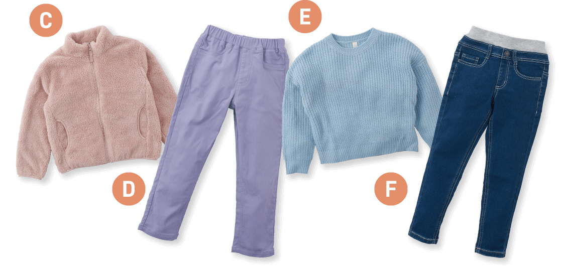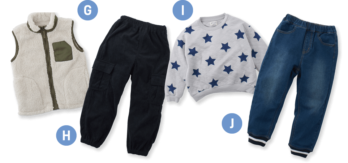 寒い季節でも、学校や外遊び、習い事などで外に出ることが多い子どもたち。西松屋には、柄や色などの組み合わせが楽しいデイリーウェアはもちろん、気温に合わせて選びやすいベストやジャケットなどのアウターも種類豊富。ぜひ自由に組み合わせて無限大のコーデを楽しんで!